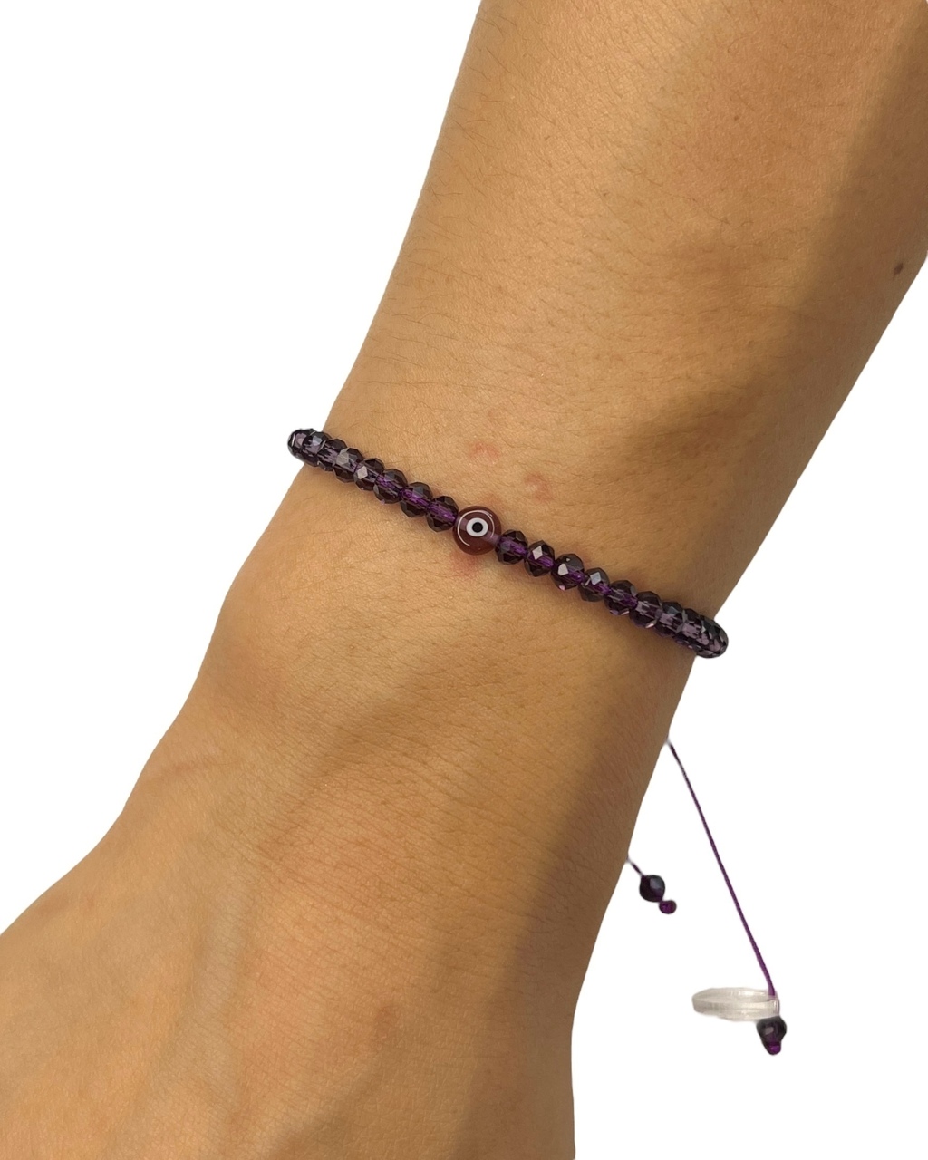 Pulsera Regulable de Cristales con Ojo de Vidrio: Belleza y Protección